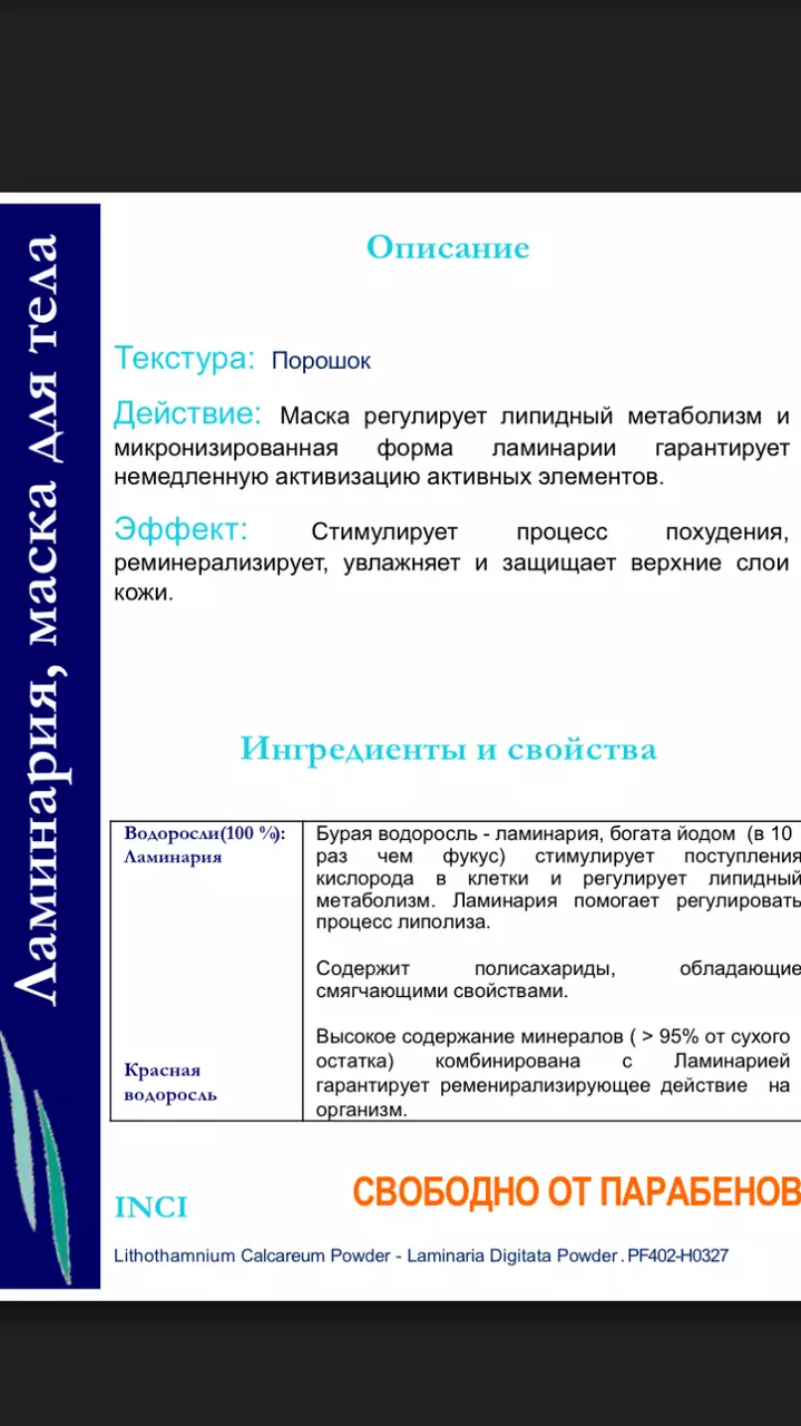 Ламинария микронизированная маска- обертывание для тела (порошок/развес 1кг, Франция)