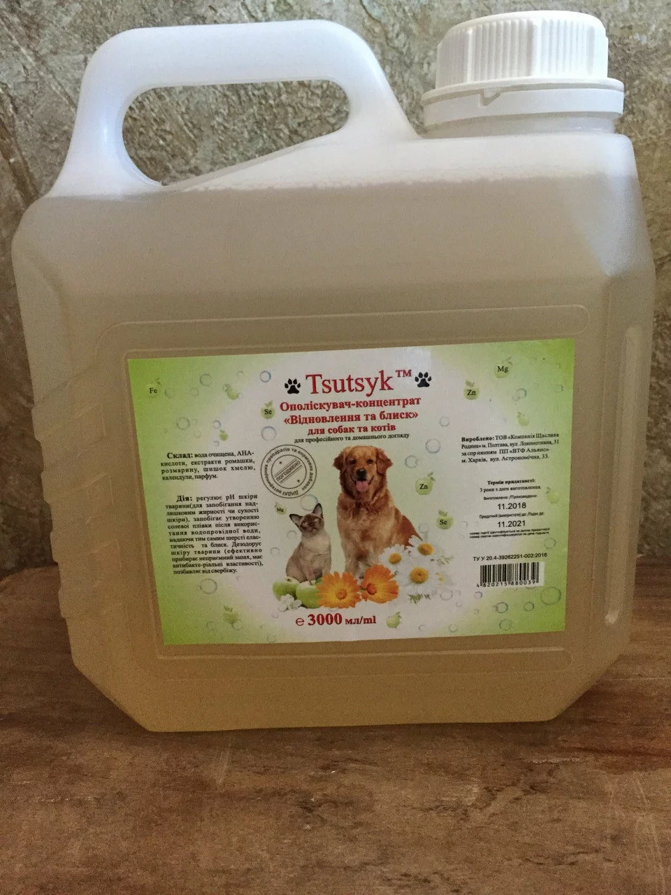 Применение: развести концентрат с водой(1:25 соответственно) и сполоснуть шерсть после купание или распылить на шерсть пульверизатором, защищая глаза и уши. Для удаления грибковых повреждений, например на лапах у собак, развести концентрат 1:10 и протереть пораженный участок, периодичность 1р в 3 дня.